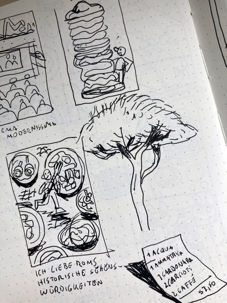 Italien ist ein Land, das mich weiterhin kaum loslässt. Nachdem ich im Januar diesen Jahres meinen Comic Grand Tour, über eine Reise nach Italien, fertiggestellt hatte, dachte ich, zumindest im zeichnerischen Sinn, vorerst ein bisschen mit dem Land abgeschlossen zu haben. Nach dieser weiteren Reise zeigte sich aber, dass dieser Gedanke (natürlich) großer Quatsch war.