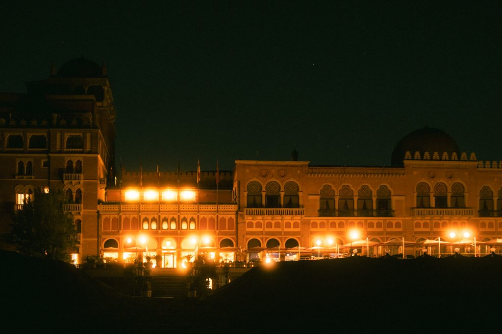 Zu Beginn unserer Reise erfüllten wir uns einen kleinen Traum, eine Nacht im Grand Hotel Excelsior auf dem Lido di Venezia. Nur wenige Minuten vom Palazzo del Cinema, dem Austragungsort der Filmfestspiele von Venedig, gelegen und 1907 in einem fantastischen orientalischen Stil erbaut, atmet man hier die Luft vergangener, glamouröserer Tage. Bei so viel Atmosphäre, sowie einem eigenen Shuttleboot zum Markusplatz, lassen sich auch die empörten deutschen Touristen am Nebentisch gut ignorieren, an deren Namen sich das Personal im Frühstücksraum, trotz mehrtägigem Aufenthalt, leider nicht mehr erinnern konnte. Zurück auf dem Zimmer scheint die Zeit ebenfalls auf bestmögliche Weise still zu stehen, auf störende Modernität wird nämlich auch hier weitestgehend verzichtet. Nächtlichen Geisterbesuch hatten wir zwar keinen, dafür wurden wir jedoch von einer besonders durstigen Stechmücke heimgesucht. Aber nichtmal die konnte die Erhabenheit des Luxushotels stören.